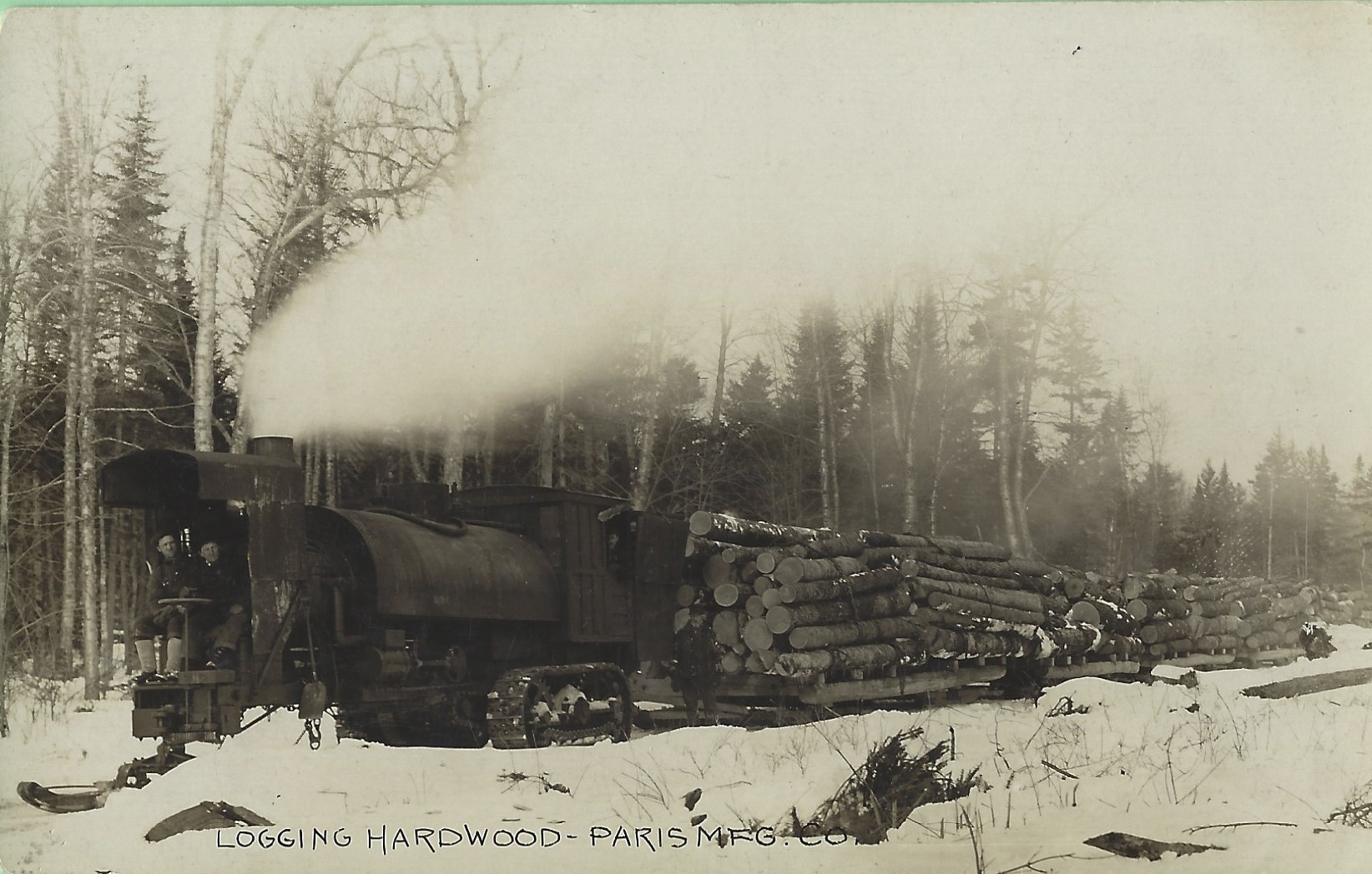 A steam log hauler operates all winter long, pulling logs from the landings to the sawmill. ![]() |