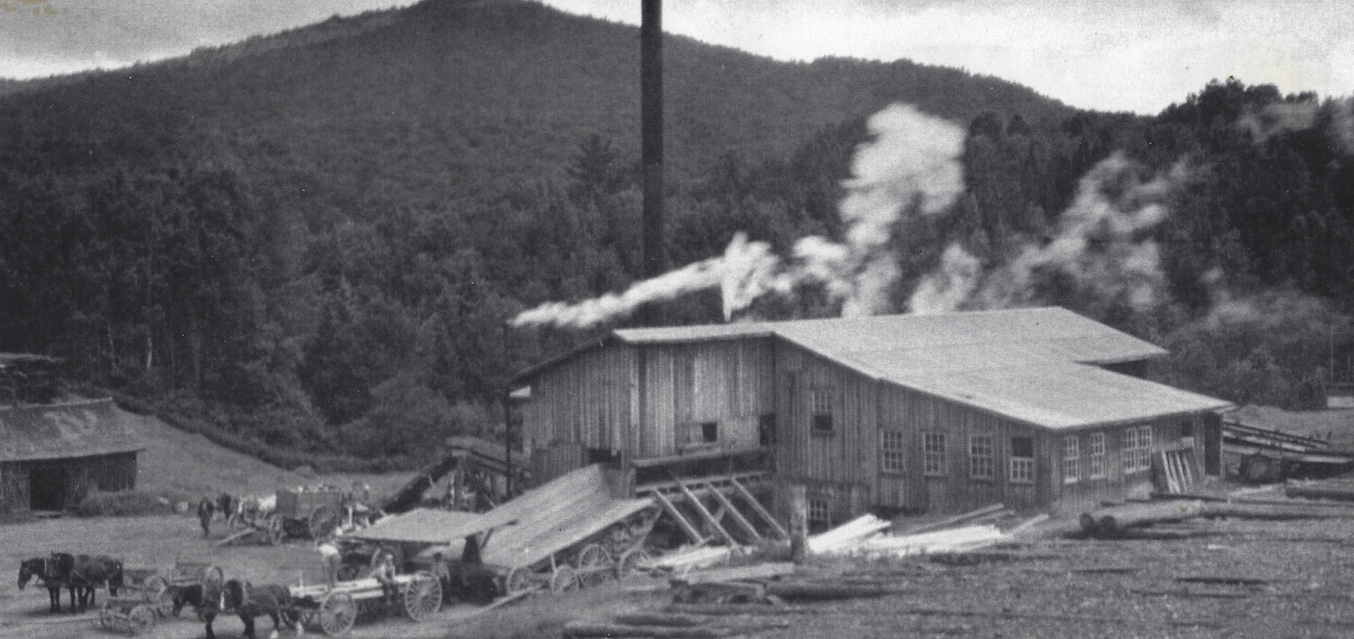 to the railroad station. The lumbermen live and eat in the large bunkhouse.